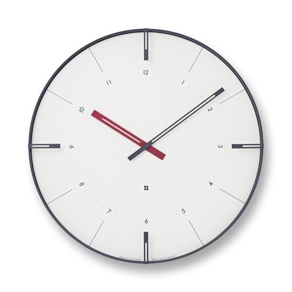 ガラスカバーを時計本体に留めつける際に必要な金具=クリップを文字盤のグラフィックデザインの一部として取り入れました。4箇所のクリップが時間を指し示す指標として存在しています。ムーブメントには電波時計を採用。合理的で繊細なイメージを機能でも実現しています。 |