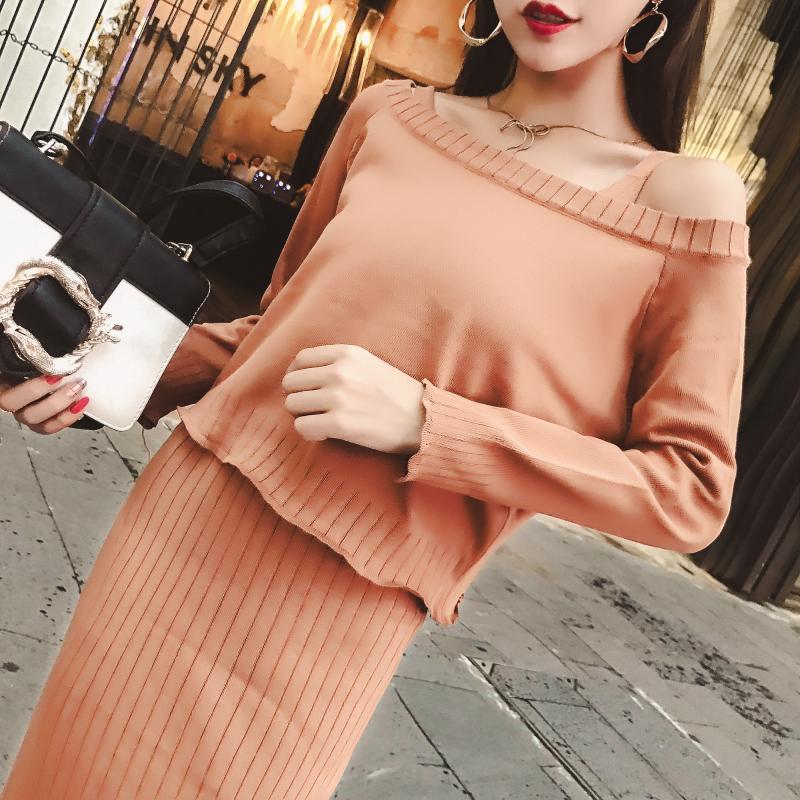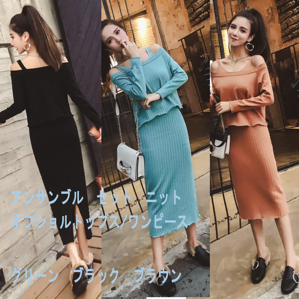 ニット、セットアップ、アンサンブル、ツーピース、ワンピース、長袖、タイトフィット、オフィス、通勤、会社、レトロ、大人、、2019、、秋、冬、デート、休日、カジュアル、ショッピング、女子会