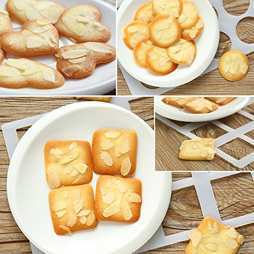 - 1pcs stencil can produce 12pcs cookies or chocolate cake decoration.Soft food graded PE material, Easy to demould.