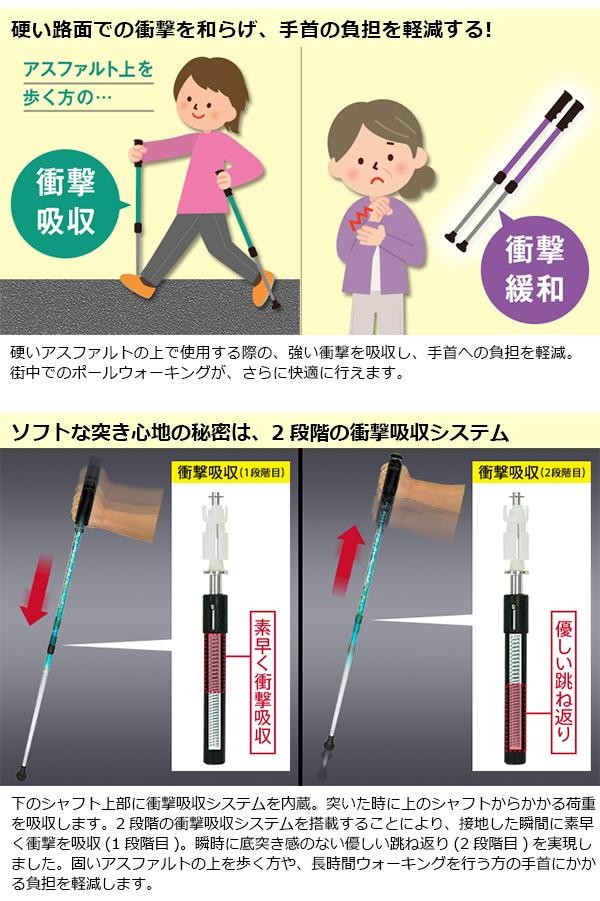 コンパクトに収納できるから、かさばらない!!サイズ調整で背の低い方にもお使い頂けます。手首や肘への負担を抑える衝撃吸収システム付き!! |