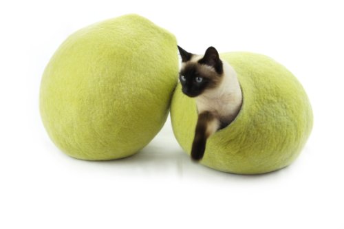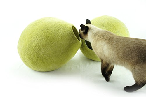-. Feature : Modern, beautifully designed from sheep wool cat house, bed, cave. Handmade, wool felt cat house are durable and easily cleaned. / Comfortable bed for your pet's healthy sleeping and rest. Perfect for Cats to play and sleep inside or on top / It is super soft and warm, so your pet will feel happy when in it. / Wet felting is a process used to make wool and other animal fibers into the dense fabric known as felt, using just hot water and soap - one of the most sustainable processes in textile. / Cat bed color Birch Green, handmade made from ecological and natural sheep wool. Birch green color will bring the sP.R.Ing in your house and comfort for your cat. It is the color of living grass and leaves and as a result is the color most associated with sP.R.Ingtime, growth and nature. Green is the color most commonly associated with nature, youth, sP.R.Ing, hope and love. So, your cat will feel love in his sP.R.Ing color house.
