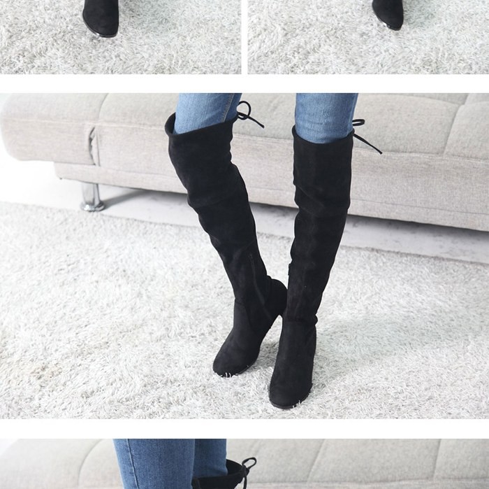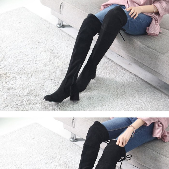 商品名:ロングブーツ レディース ニーハイブーツ ミドルヒール チャンキーヒール 太ヒール 2017 秋 冬 ファッション 靴 婦人靴