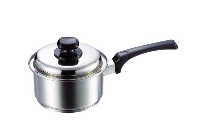 | シンプルデザインのIH対応片手鍋です。内面ミラー仕上げで料理がこびりつきにくく、お手入れ簡単です。また18-8ステンレス鋼のボディはサビに強く衛生的です。 |