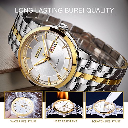 BUREI Mens Classic Luminous Day and Date Automatic Watch