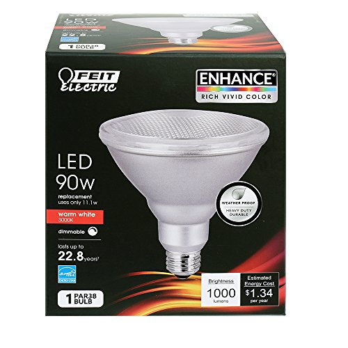 Studio : Feit Electric Inc. Publisher : Feit Electric Inc. Binding : Tools Home Improvement Product Description The Feit electric high-CRI dimmable enhance LED Par38 reflector spot lamp is specifically designed to facilitate a home's transition into the cutting edge performance and quality of LED light bulb that meets the latest Title 24 requirements of the California energy Commission. It has a CRI of 90 and an average life of 25, 000hours. The Feit electric 90-watt equivalent Par38 LED is warm white, fully dimmable and is great for security, recessed and track lighting applications. This Par38 LED is weatherproof to withstand mother nature’s biggest challenges and rest assured that by using Feit electric Par38 LED neither your property nor family will be left in the dark. Featuring a sleek design, this fully dimmable, medium base spot light replaces your current Par38. 0