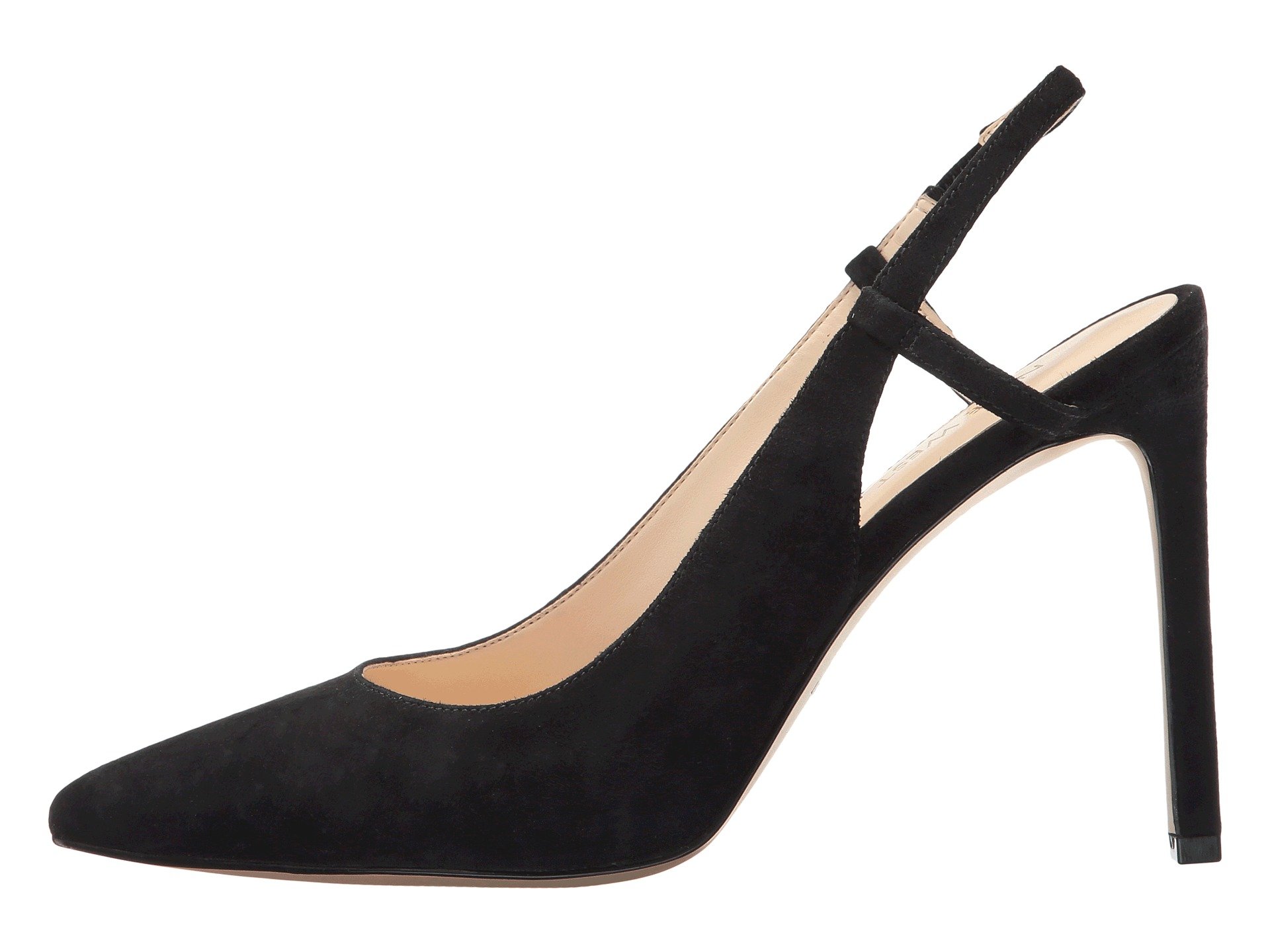 | Product Information SKU: #8852262Craft a polished look that's sure to be admired with the Nine West? Tarly pump.Suede or leather upper.Slip-on design with slingback ankle strap.Pointed-toe silhouette.Man-made lining.Lightly padded footbed.Wrapped heel.Man-made sole.Imported.Product measurements were taken using size 8, width M. Please note that measurements may vary by size.Weight of footwear is based on a single item, not a pair.Measurements: Heel Height: 4 1?2 in Weight: 8 oz |