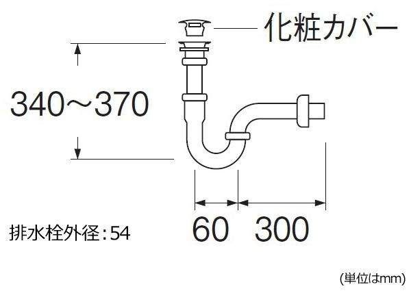 排水栓外径54、化粧カバー、アジャスト付のPトラップです。