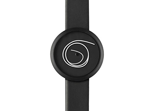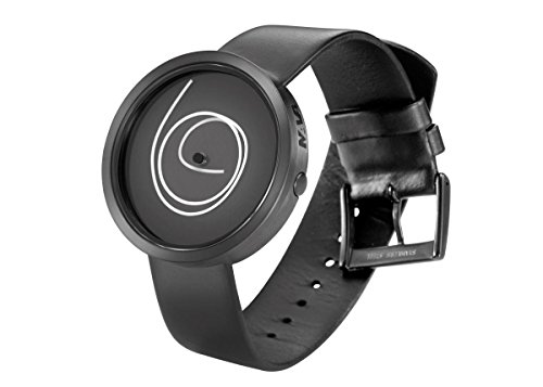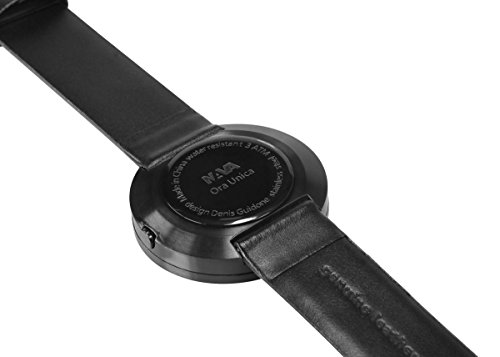 -. Feature : Display: Analog, Movement: Quartz, Crystal: Mineral / Case Material: Stainless Steel, Case Color: Black, Case Diameter: 42mm, Case Thickness: 10mm, Band Width: 20mm / Band Color: Black, Band Type: Leather Strap, Dial Color: Black, Shape: Round / Water Resistance: 30m, Warranty: One year / A modern masterpiece from Nava, meant to make a simple statement on the wrist. The Ora Unica Stainless Watch features a black stainless steel case and a sleek, streamlined leather band. The dark design is a perfect backdrop for a unique dial formed from two clear, layered disks. Each disk features a bright white doodle with blunted ends that point to the hour and minute. As the time changes, the doodles rotate, remolding the entire shape of the dial's design. This ever-evolving work of art is both to-the-point and playful - perfect for creative types with a sense of humor.