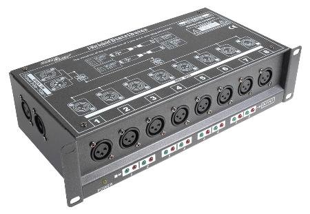 8 Way Isolated DMX Splitter - 3-Pin to 3-Pin