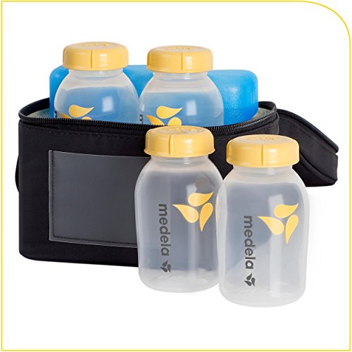 Removable cooler bag with contoured ice pack holds four breast milk bottles additional SIX Milk Collection and Storage Bottles, 5 Ounce - TEN Bottles Total