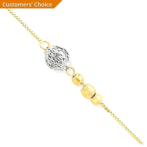 ICECARATS DESIGNER JEWELRY 14K TWO TONE YELLOW GOLD BEAD 91IN ADJUSTABLE CHAIN PLUS SIZE EXTENDER ANKLET FOR WOMEN ANKLE BEACH CHAIN BRACELET