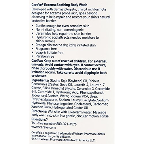 CeraVe Eczema Soothing Body Wash 10 oz with Omega Oils and Ceramides for Cleansing and Calming Dry, Itchy, Eczema Prone Skin