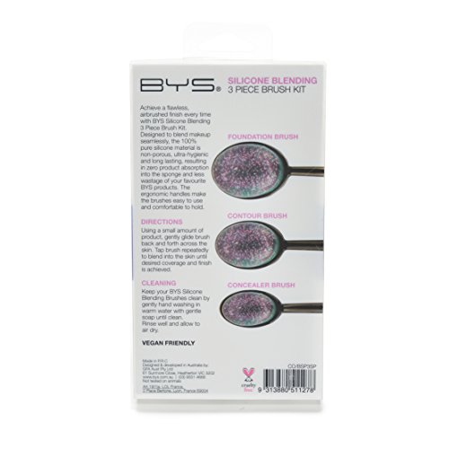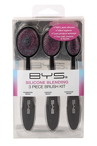 BYS Oval Silicone Blending Brush 3 Piece Foundation, Contour, Conceal - Purple Glitter