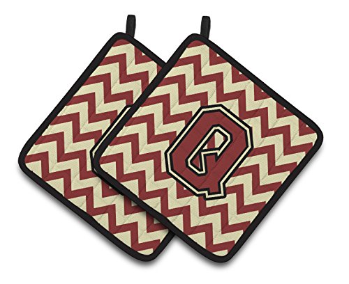Caroline's Treasures Letter Q Chevron Maroon & Gold Pair of Pot Holders CJ1061-QPTHD, 7.5HX7.5W, Multicolor