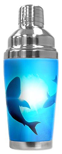 -. Brand : Mugzie -. Color : Multicolor -. Feature : 20 Oz Stainless Steel Cocktail Shaker covered with water-proof, neoprene wetsuit material. No more cold, wet hands when shaking up your favorite cocktail. / Hand-sewn fabric cover is made from 1/4 inch closed-cell neoprene that is covered with soft, water-proof polyester fabric. / Stain-resistant cover is printed in hi-resolution and has full-wrap coverage. Leak and spill proof lid. Non-skid bottom. / Cushioned cover affords a secure grip and eliminates condensation and sweating. Bottom counter-weighted bottom provides stability. / Patented. Truly unique. Over 750 different designs. Made in the USA. FREE SHIPPING. -. Label : Art Plates -. Manufacturer : Art Plates -. Model : 8591-SHAMAX -. MPN : 8591-SHAMAX -. PackageQuantity : 1 -. PartNumber : 8591-SHAMAX -. ProductGroup : Kitchen -. ProductTypeName : KITCHEN -. Publisher : Art Plates -. Size : 16 Ounce -. Studio : Art Plates -. Title : Mugzie 20 Ounce Stainless Steel Cocktail Shaker with Insulated Wetsuit Cover - Circling Sharks