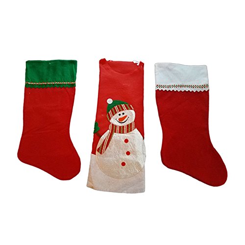 Snowman Felt Tree Skirt with Red Stocking with White Trim and Red Stocking with Green Trim Bundle