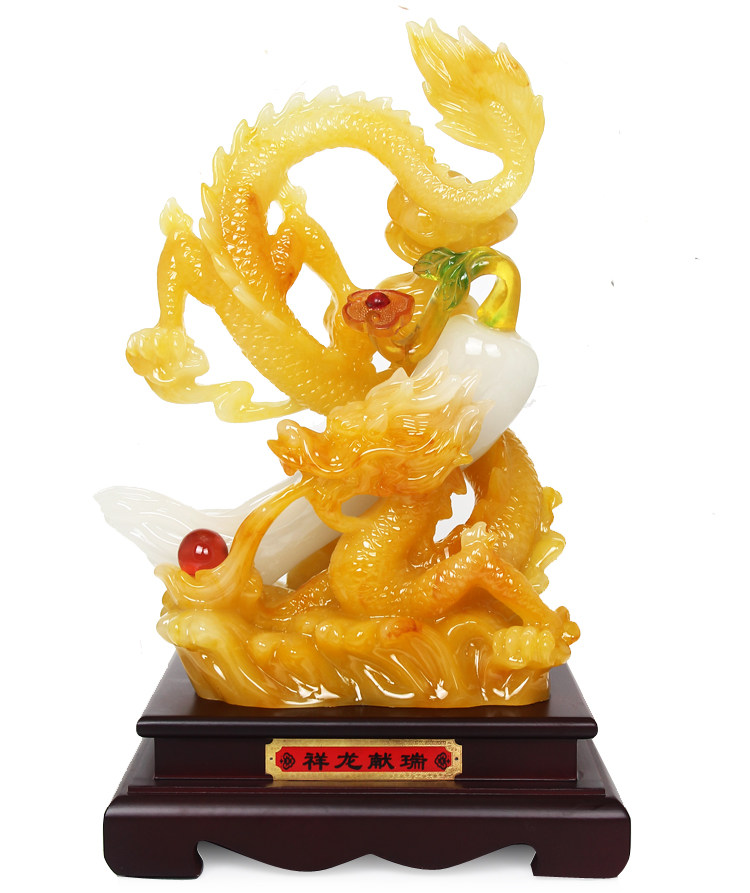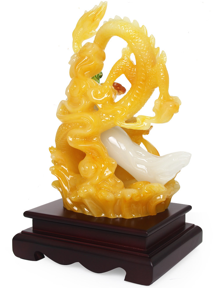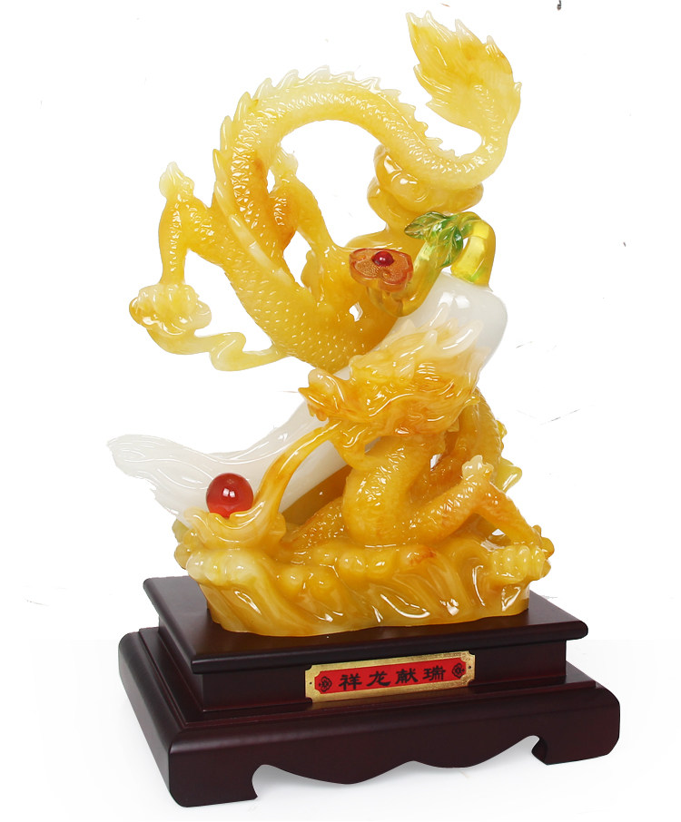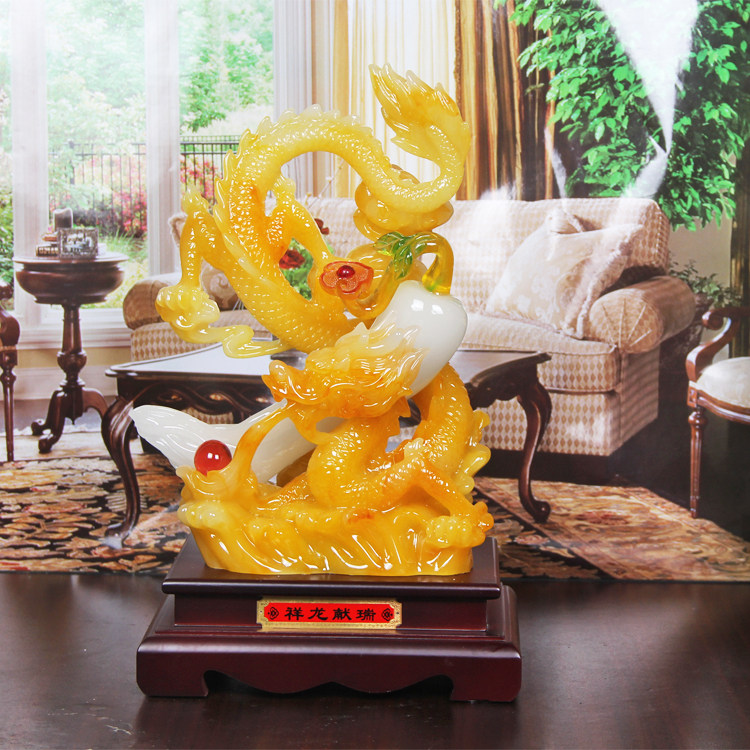 祥龙献瑞 黄玉龙摆件树脂工艺品乔迁新居风水装饰十二生肖龙摆设