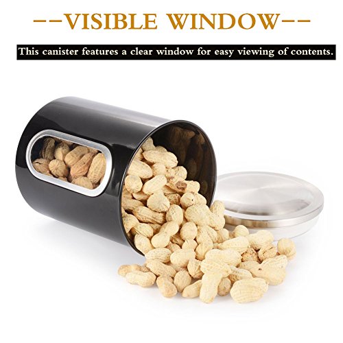 Canisters Set Food Storage Containers with Lid - SVVSS Moistureproof Anti-Fingerprint Stainless Steel canisters ,Multi-Purpose Window Kitchen Cereal Container Sets of 3