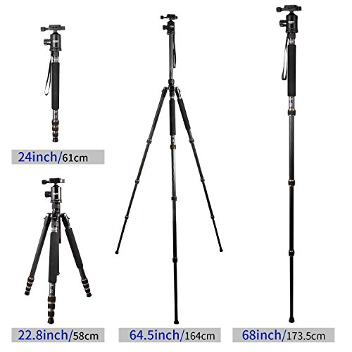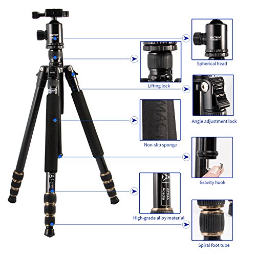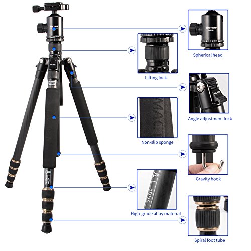 Mactrem AT64, 163,8cm (64.5¡¡) tragbares Aluminium und Magnesium Kamerastativ,Carbonfaser Kamerastativ abnehmbares Einbeinstativ, 360 Grad Kugelkopf, 63,5cm (?¡¡) Schnellwechse