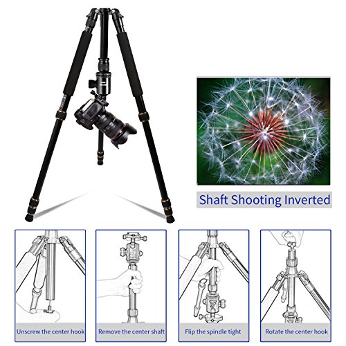 [Anpassungsfahigkeit] Der Kugelkopf gibt eine unvergleichliche Kontrolle uber die nachste Aufnahme. Wahrend der 4-Bein-Sektionen Teil eine wunderbare Handhabung bietet, ermoglicht die verstellbare Mittelsaule bestmogliche Makroaufnahmen