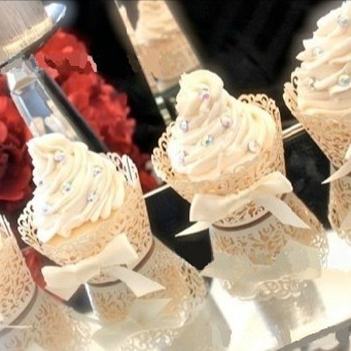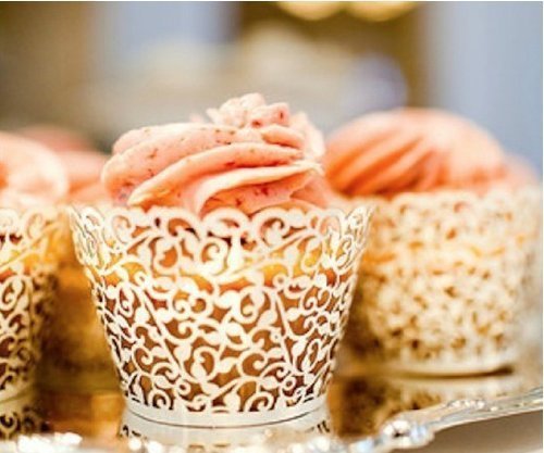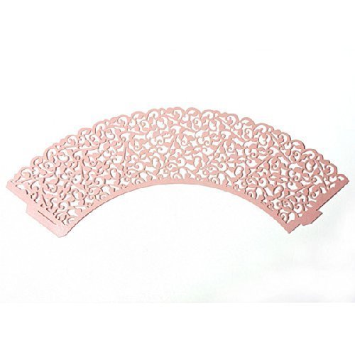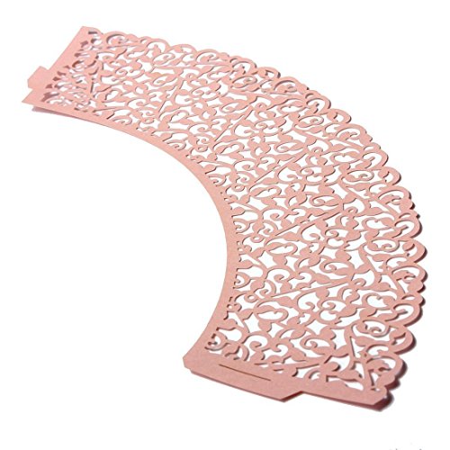 Sorive ® 60x Artistic Bake Cake Cups Filigree Little Vine Lace Laser Cut Cupcake Wrapper Liner Baking Cup Muffin CaseTrays for Wedding Birthday Party Decoration (Pink)