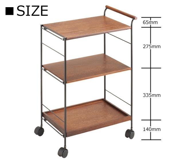 | 木の温もりがあふれる木製天板3段のシンプルワゴン。天然木ツキ板仕上げ(芯材:MDF)のワイドサイズ天板を使用。ロータリーワゴンとしてオールマイティにご利用頂けます。前後のシャフト(棒)にもタオルやラックが掛けられるようになっております。 |