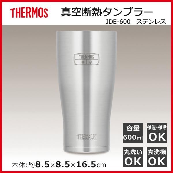 氷を入れても結露しません。ビールにもおすすめなタンブラーです。 製造国:中国 素材・材質:ステンレス 商品サイズ:約8.5×8.5×16.5cm 重量:約200g 仕様:食洗機:可容量:600ml保冷効力(1時間):7度以下保温効力(1時間):約78度 ※サプライヤー直送品 ご注文後5~6営業日後の出荷となります【商品名】サーモス 真空断熱タンブラーJDE-600 ステンレス