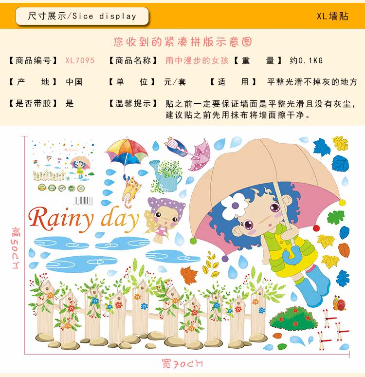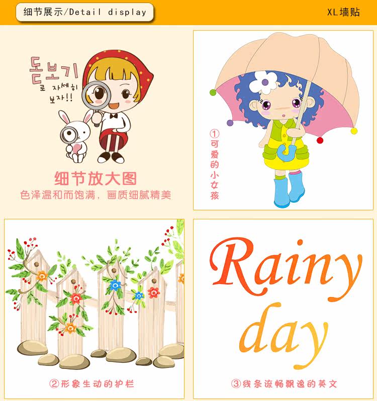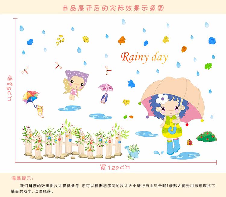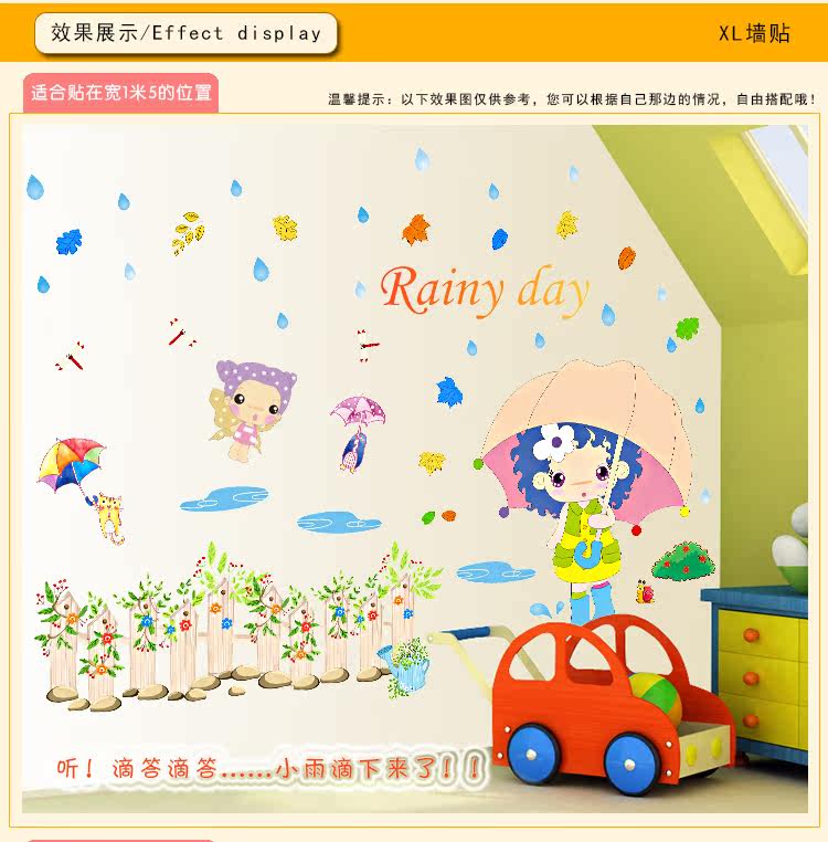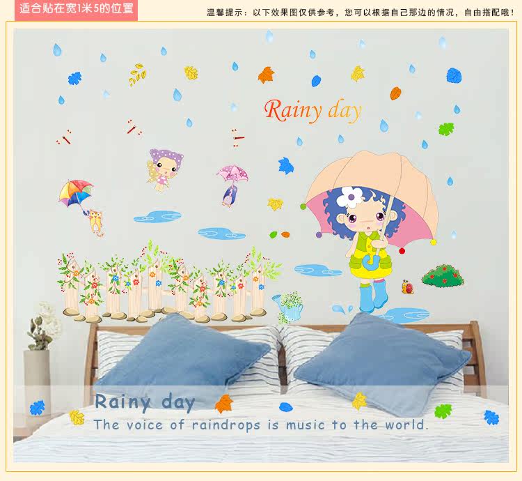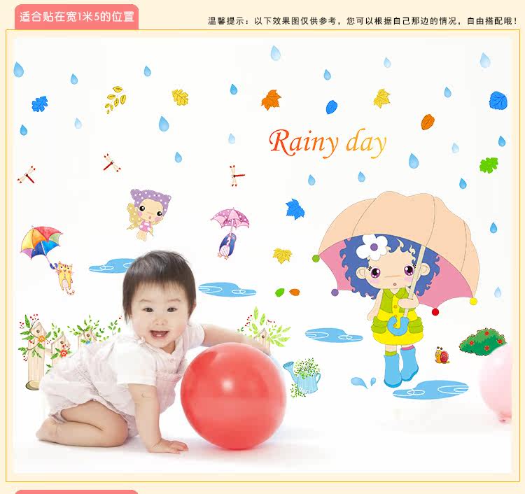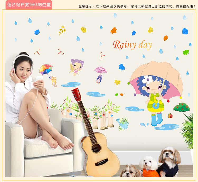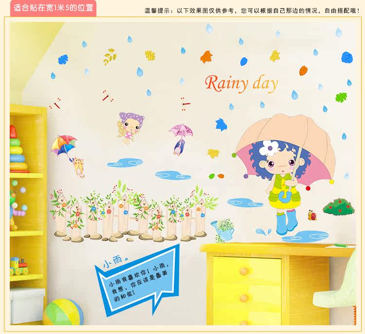 卡通萌女孩儿童房自粘墙纸贴画幼儿园卧室墙壁可移除装饰画墙贴纸