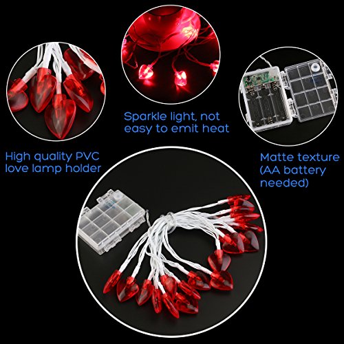 LEORX Heart Shaped Valentine Day Lights 10 Ft. 2 Modes for Valentine Day Decorations & Supplies