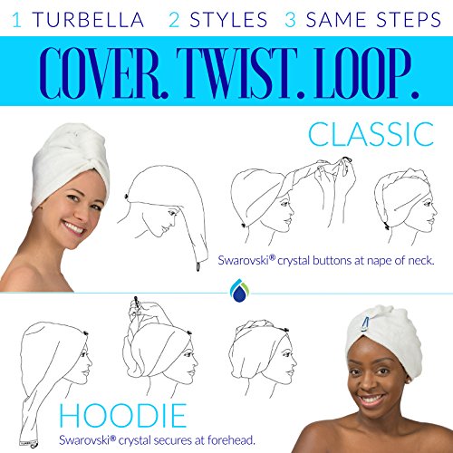 DESIGNED TO WEAR TWO WAYS ~~ Easily wrap it in the hoodie style on a child or yourself with no leaning over required. ~~ ONLY BRAND MILLED & MADE IN AMERICA ~~ No harsh dyes or chemicals touch porous skin. Women and kids with sensitive skin can use with confidence. ~~ GUARANTEED ~~ Backed by a full money-back guarantee. ~~ Free replacement Swarovski® button for the life of your Turbella.