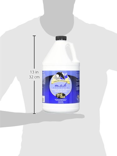 Stop the Itching, Start the Healing! M.E.D. Wellness Shampoo features a natural blend of antiseptic healing agents including aloe Vera, eucalyptus oil and chamomile extract. While typical medicated shampoos can leave the coat dull, M.E.D. leaves the coat refreshed with a stunning sheen and gets to work on skin problems. Excellent for skin allergies, eczema, bug bites, sunburn, clipper irritation, hot spots and more! Refreshing herbal scent. Features Coat Release technology to easily remove shedding undercoat while maintaining skin health. Can be used as Step 1 of Best Shot's 3-Step grooming system. Dilutes up to 10:1, 3:1 for irritated skin. Safe for Horses, Dogs, Cats, Puppies and Kittens. Non-medicated, non-veterinary grooming preparation for hygiene purposes only. Available in 12 ounce and gallon sizes.Feature