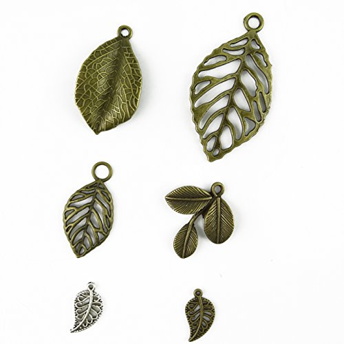 Honbay 18pcs Vintage Bronze Tree Leaf Theme Tone Alloy Charms Finding, Mixed 6 Styles, DIY Jewelry Making Findings For Bracelet Necklace
