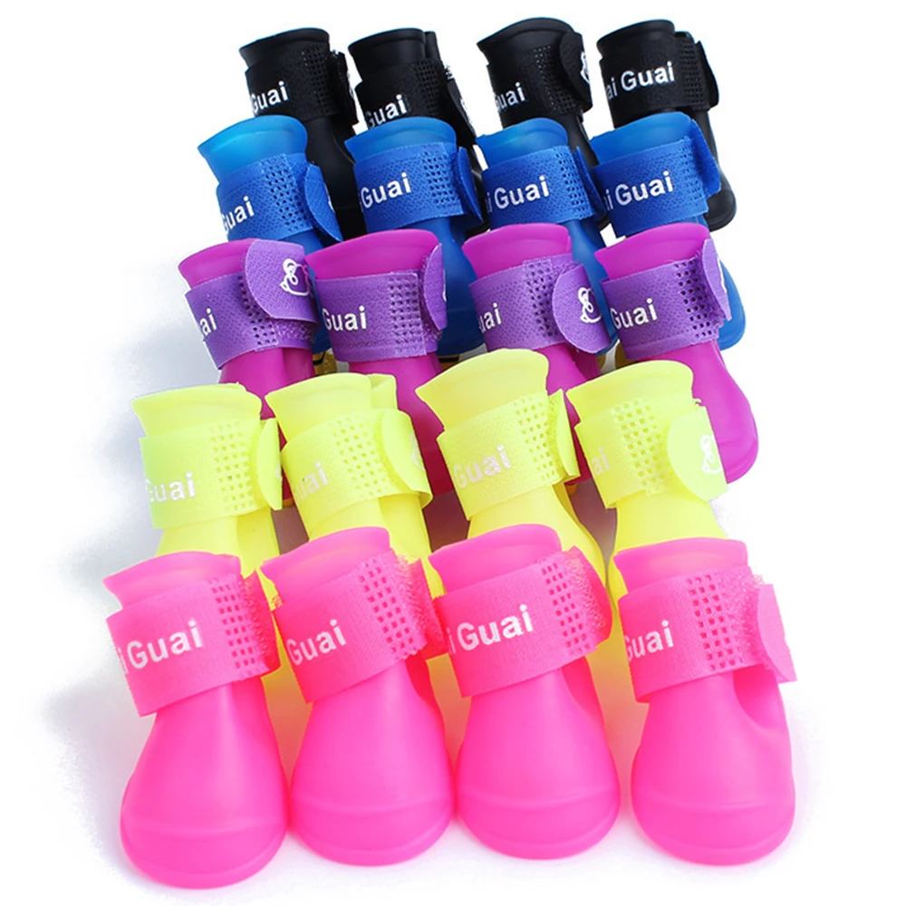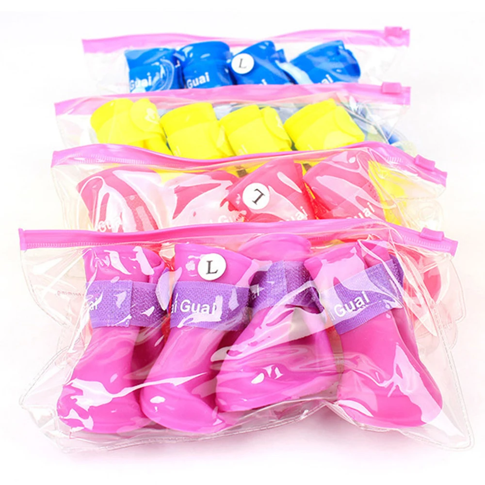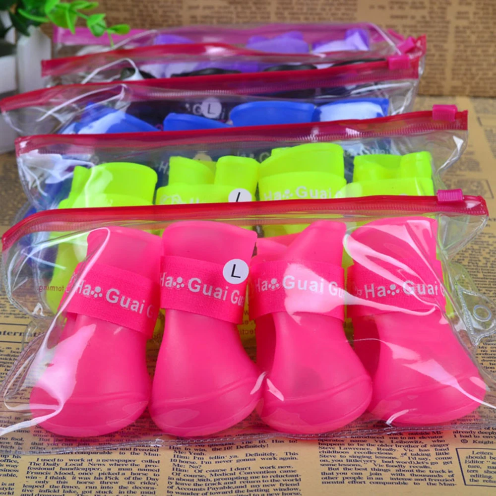 Package Include:Dog Candy Colors Boots Waterproof Rubber Pet Rain Shoes Booties(1Set)
