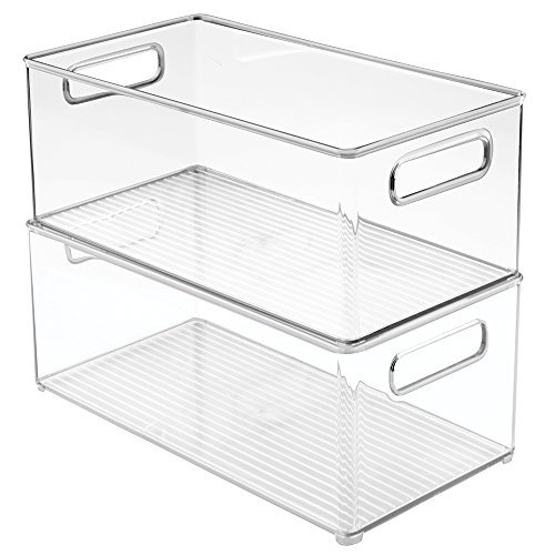 mDesign Refrigerator, Freezer, Pantry Cabinet Organizer Bins for Kitchen - 8" x 6" x 14.5", Pack of 2, Clear