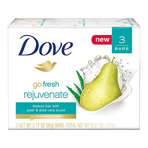 It's time to brighten up your mornings and get softer, smoother more radiant skin vs. Ordinary soap, with dove go fresh rejuvenate pear & aloe beauty bar. If you love aloe vera and pear fragrances, you'll love this dove beauty bar. With its uplifting scent, dove rejuvenate helps you feel refreshed and ready for the day ahead. Combining The scents of juicy pear and aloe vera, cleanse with this dove go fresh beauty bar to rejuvenate your skin as you wash, leaving you feeling fresh and your skin beautifully scented. And Unlike regular soap -which can dry out your skin -our beauty bar contains mild cleansers and our classic 1/4 moisturizing cream. So let dove shower you in nourishment -and get smooth, soft skin every time. What better way to start the day? massage your dove go fresh beauty bar over your body for a refreshing, smooth, silky lather before rinsing with warm water. at Dove, our vision is of a world where beauty is a source of confidence, and not anxiety. So, we are on a mission to help the next generation of women develop a positive relationship with the way they look - helping them raise their self-esteem and realize their full potential. this Dove bar even helps to replenish nutrients that are lost during the cleansing process - where a regular soap bar might leave your skin feeling dry and tight, a dove white bar leaves it feeling soft and smooth. Washing with regular soap can cause skin to feel dry, tight and irritated as some cleansing ingredients strip skin of essential nutrients. What makes dove different? its gentle cleansers help your skin retain its natural moisture and its mild formula is kind to your skin.Feature