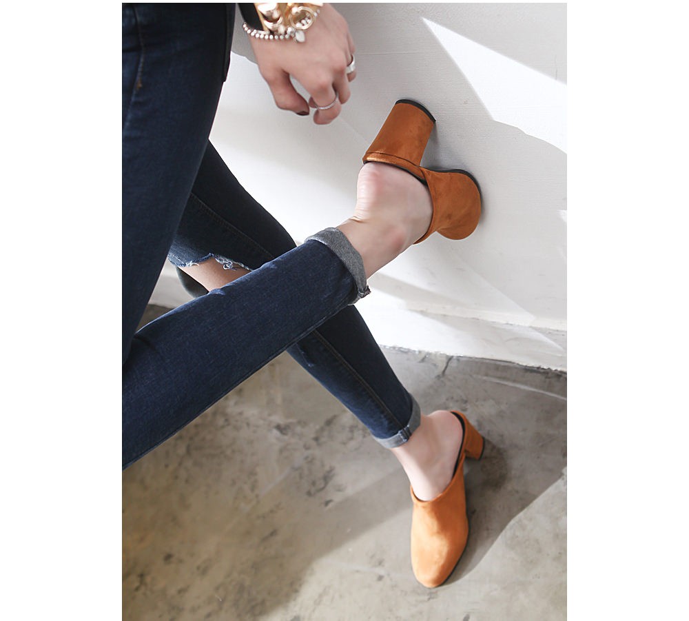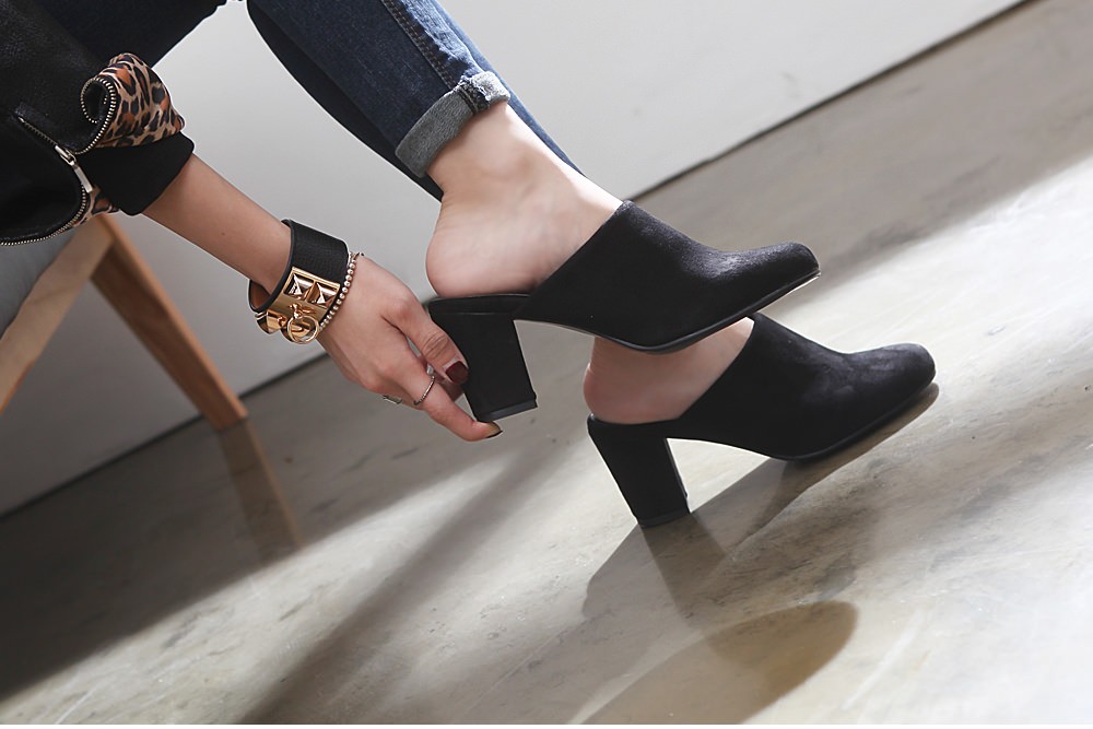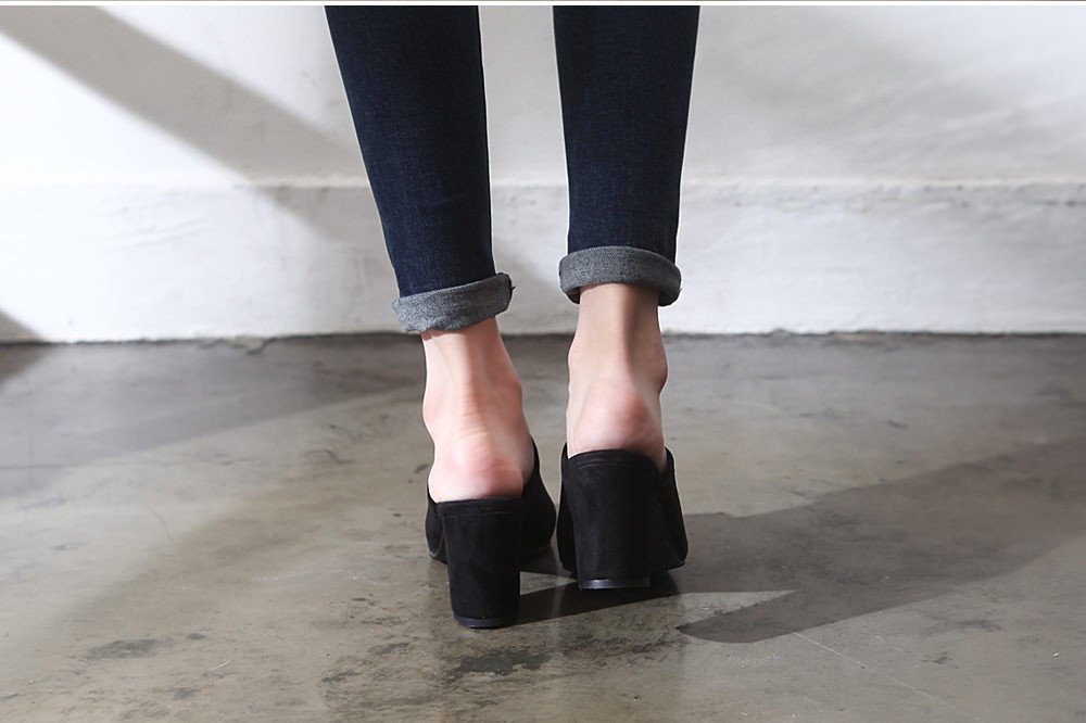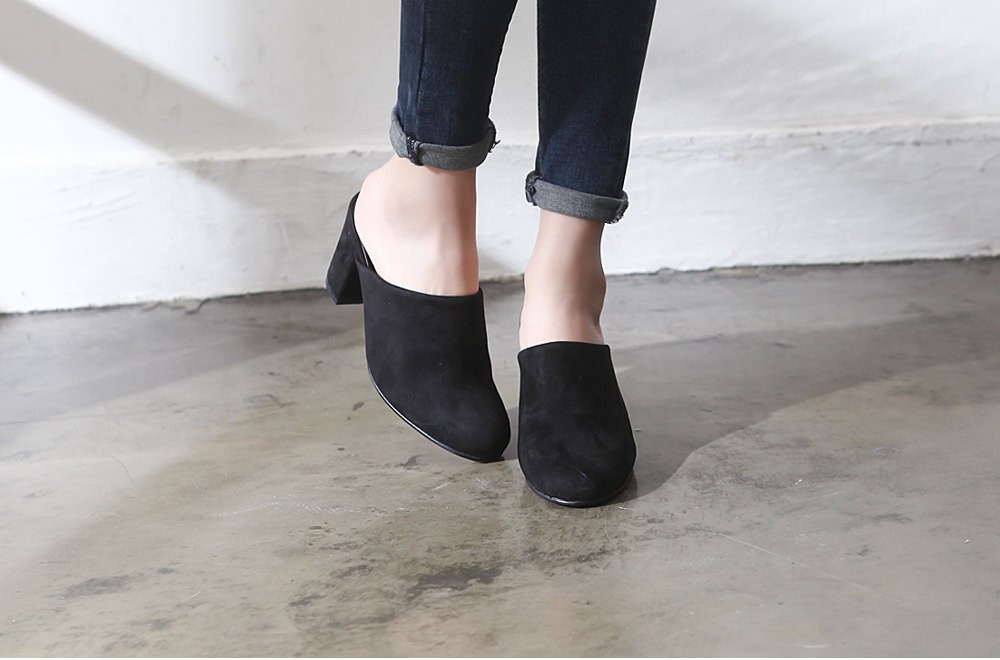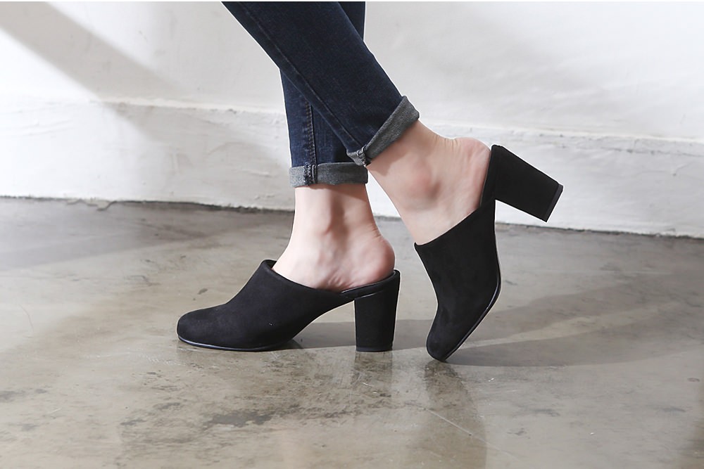 ◆商品名:ミュールサンダル レディース 太ヒール パンプス スエード 黒 ブラック 歩きやすい 婦人靴