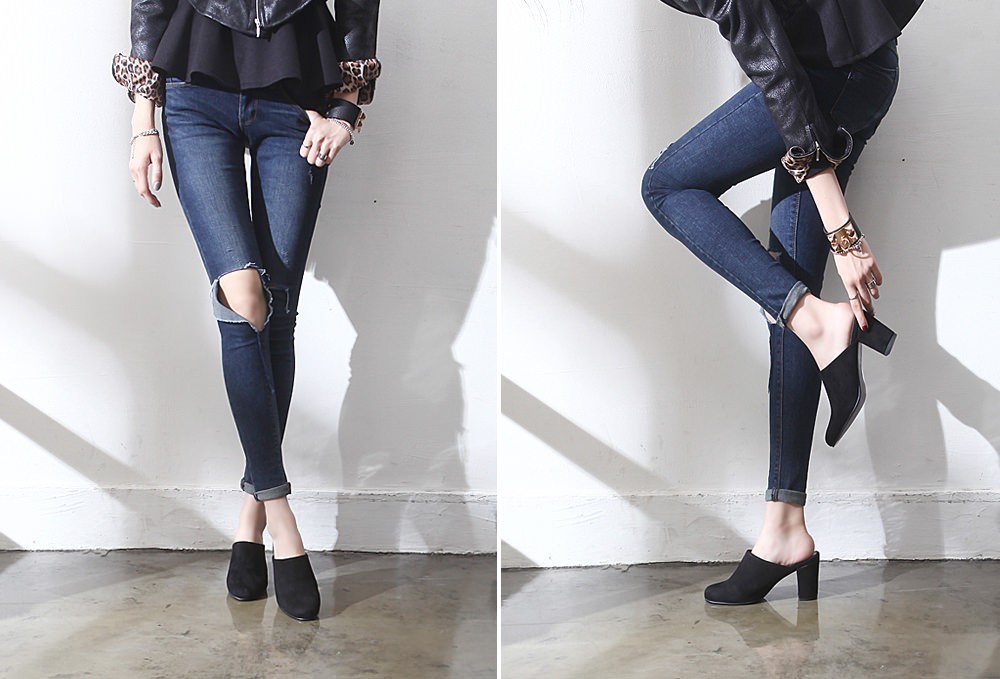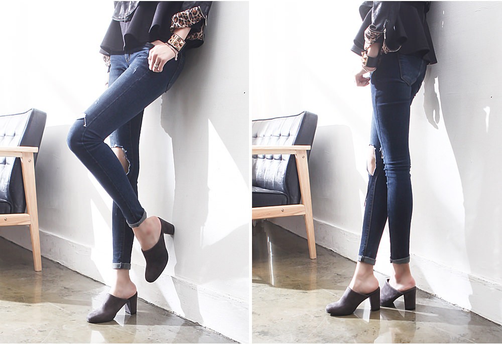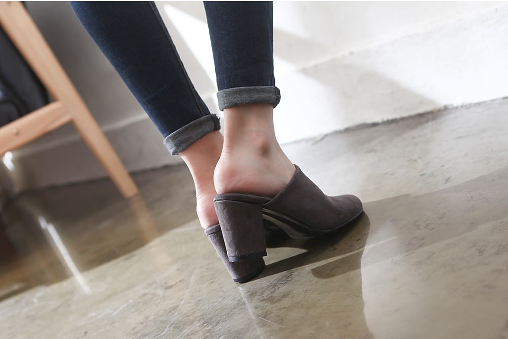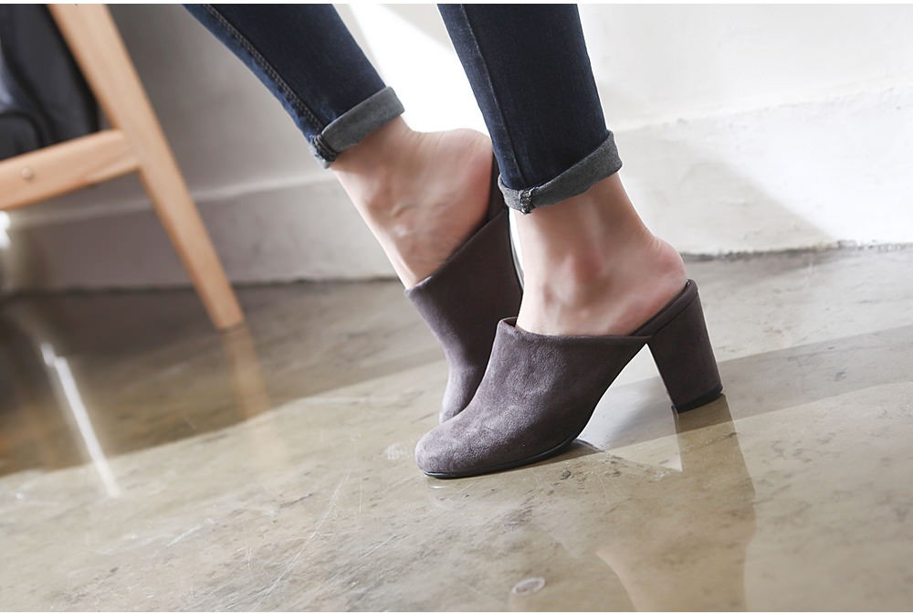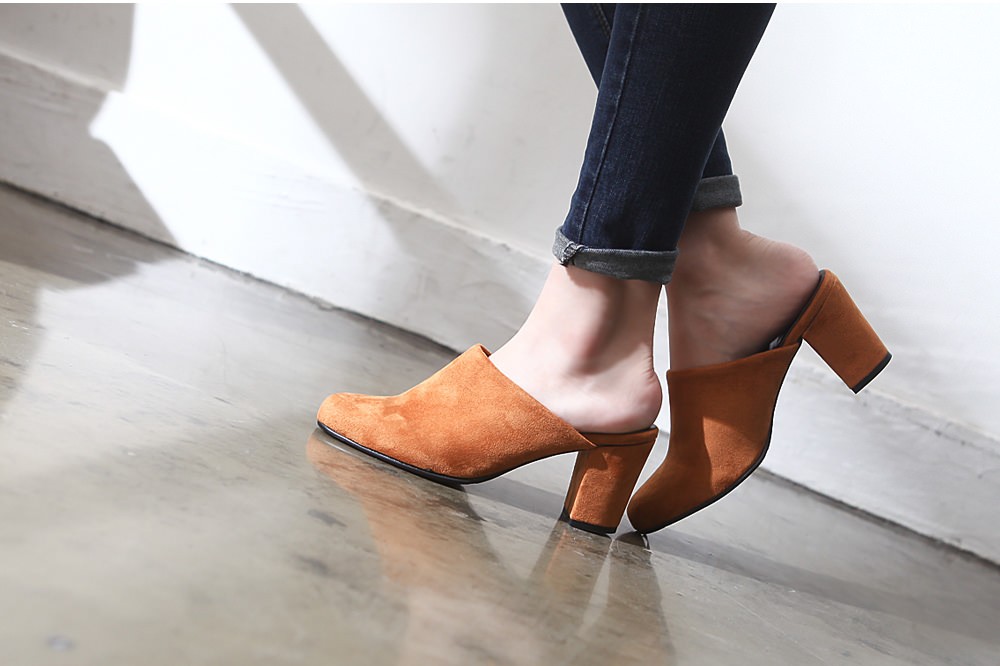 ◆商品名:ミュールサンダル レディース 太ヒール パンプス スエード 黒 ブラック 歩きやすい 婦人靴