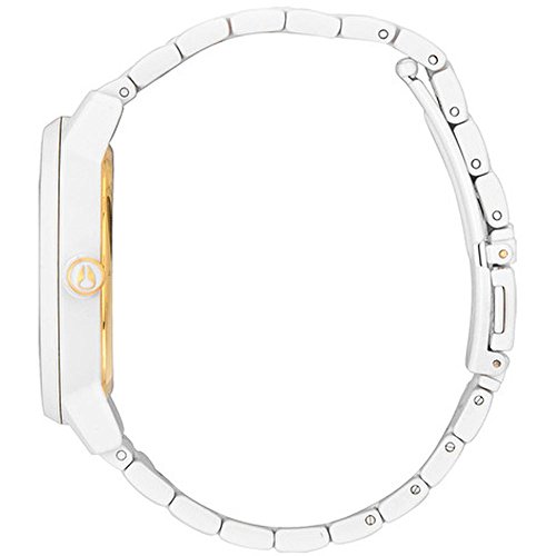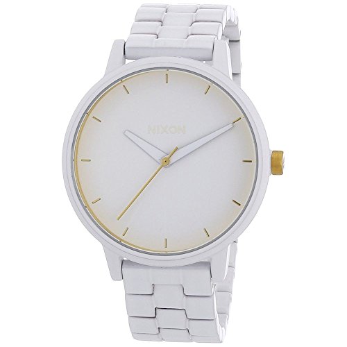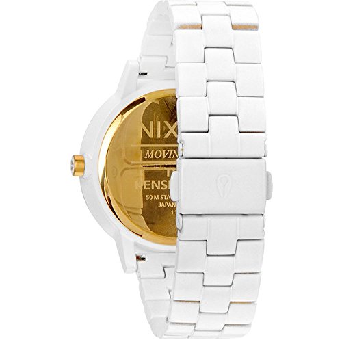 Characteristic of Nixons signature elegance and style this classic timepiece provides much-needed flair for any affair Composed of a 37mm white stainless steel case and a white stainless steel band and single locking fold over clasp this classy watch incorporates durability into luxury to produce an unparalleled timekeeping accessory The analog display and white dial are protected by a sturdy mineral crystal and is powered by a high-quality japanese-quartz movement All of this is secured by a 100 meter water resistance proving the watch to be a reliable accessory to portray panache with ease Additional features include luminous water resistant to 100 meters and measures secondsFeature