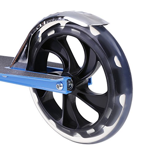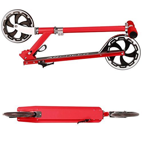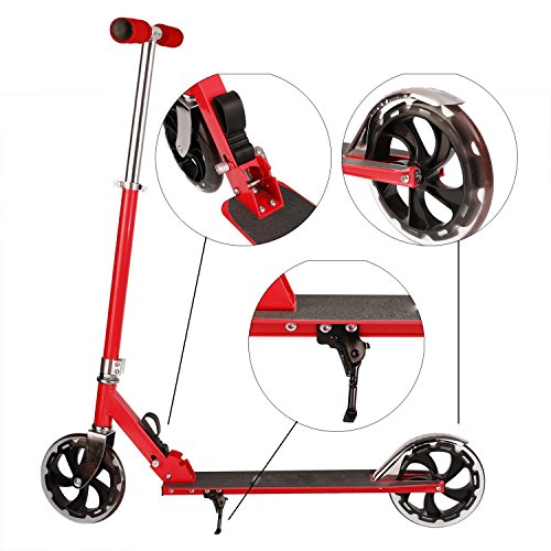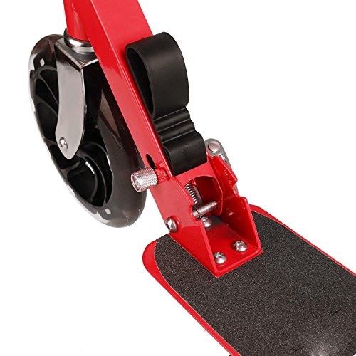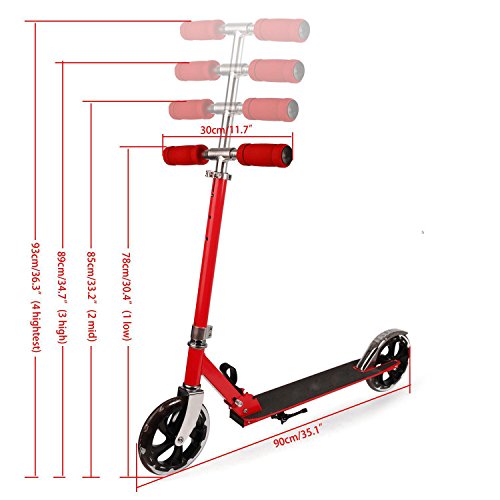 -. Feature : ☛:Lightweight and Stable--- It adopted aircraft-grade aluminum alloy frame and precision technology of rear brake brings you a placidly riding. / ☛:Adjustable Height--- The T bar's height can be adjusted to 4 levels within 78-93cm/30.4-36.3 inch to satisfy the growing height of child and adults at the same time. / ☛:Smooth and Quiet--- This scooter adopted 200mm PU wheels and high quality bearings which makes ride smooth and quiet / ☛:Foldable and Safe--- The folding design is easy to carry and store, the deck is anti-slip which brings you a safe ride. / ☛:Comfortable--- The grips are soft to touch and is capable of absorbing sweat. please note that the load capacity is 90 kg/198 lb.