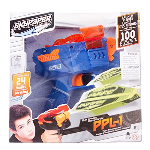 Studio : ACTIVE-PLAY-SET Publisher : ACTIVE-PLAY-SET Binding : Toy Product Description Blast off into the ultimate paper airplane experience! Think of it this way: Propeller planes are to jet airplanes what hand-tossed paper airplanes are to the Skypaper Plane Launcher. Grab one of the twenty-four included D.I.Y. paper airplanes, fold it just right, and then load it into the launcher, aim toward the sky, pull the trigger, and... WHOOSH! - Instantly your plane goes soaring up to 100 feet through the air!! Try loading up to three airplanes at once for a rapid-fire launch. Fly with the glider-style paper airplanes for a smooth, long-distance flight. Or, try out one of the stunt planes for amazing aerial acrobatics. Paper airplanes have never been more thrilling! Get your hands on the Skypaper Paper Plane Launcher and see just how far and how fast you can fly - The future of paper aviation awaits! Skypaper Paper Plane Launcher Powerful paper airplane launching device Encourages fine motor skills, hand-eye coordination, creativity, imaginative play Experience the ultimate in paper aviation! Launches planes up to 100 feet Stack up to 3 paper planes for rapid-fire multi-launch action Includes Paper Plane Launcher, 24 D.I.Y. paper planes (20 glider planes, 4 stunt planes) Requires 4 AAA batteries - Not included High quality design and materials for lasting durability, exceptional plane-flying experience 0