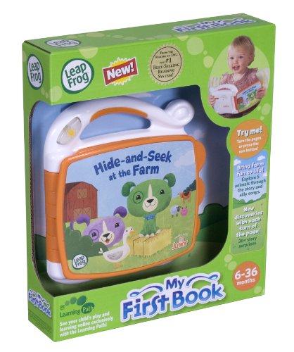 -. Binding : Toy -. Brand : LeapFrog -. Color : green -. EAN : 8851546614648 -. Feature : Turn the pages and begin a love of reading with My First Book / As children flip through the pages, they learn about how books work, while also getting an introduction to farm animals / Features more than 30 storylines of audio relating to the book's art, helping children explore words and their meanings / Parents can connect to the online LeapFrog Learning Path for customized learning ideas and insights from LeapFrog -. IsAdultProduct : 0 -. IsAutographed : 0 -. IsMemorabilia : 0 -. Label : LeapFrog -. LegalDisclaimer : 6-36 months -. Manufacturer : LeapFrog -. Model : 19154 -. MPN : 80-19154E -. PackageQuantity : 1 -. PartNumber : 80-19154E -. ProductGroup : Toy -. ProductTypeName : TOYS_AND_GAMES -. Publisher : LeapFrog -. ReleaseDate : 2009-06-04 -. SKU : B0038ALXKU -. Studio : LeapFrog -. Title : LeapFrog My First Book: Hide-and-Seek at the Farm -. UPC : 708431191549