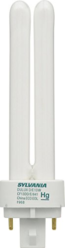 Sylvania 20667 (4-Pack) CF13DD/E/841/ECO 13-Watt Double Tube Compact Fluorescent Light Bulb, 4100K, 900 Lumens, T4 Shape, 82 CRI, 4-Pin G24q-1 Base