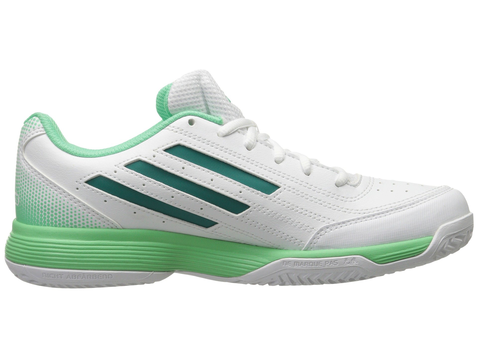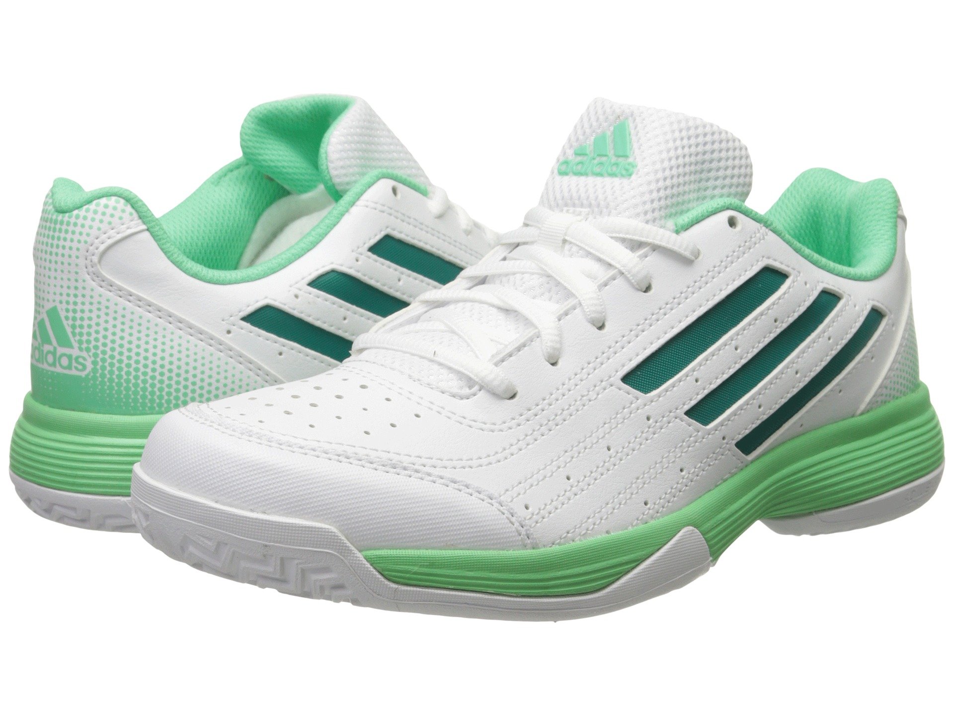 | Product Information SKU: #8639473Reaching match point just got easier with the Sonic Attack from adidas?.Durable synthetic and mesh upper.Lace-up closure for snug fit.Padded collar and tongue for all-day comfort and stability. Perforated toe box for breathability.Logo at tongue and heel.3-Stripe? logo at sides. Breathable textile lining for all-day comfort. Soft EVA midsole for lightweight comfort. color-pop durable rubber outsole. Imported.Product measurements were taken using size 7.5, width B - Medium. Please note that measurements may vary by size.Weight of footwear is based on a single item, not a pair.Measurements: Weight: 14 oz |
