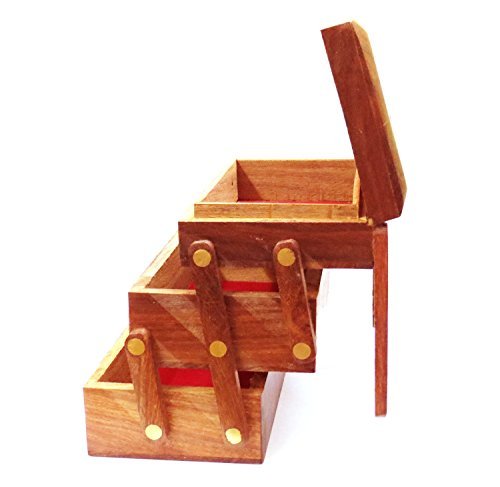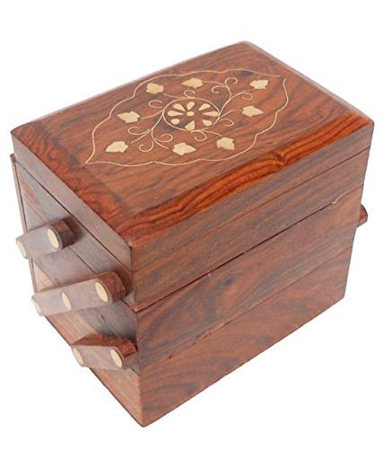 Valentine Day Special Present, Wooden Vintage Box Brass Inlay design 3 compartment Slide Open Box, Multipurpose Storage Box,Earring Box, Jewelry Organizer Box, Brown Color Size 5.5 X 3.5 Inch