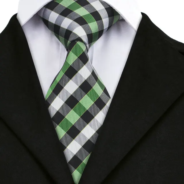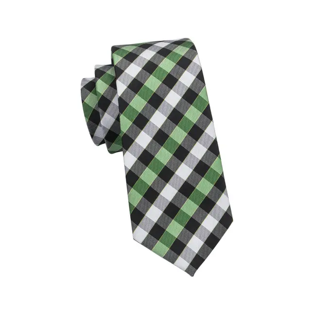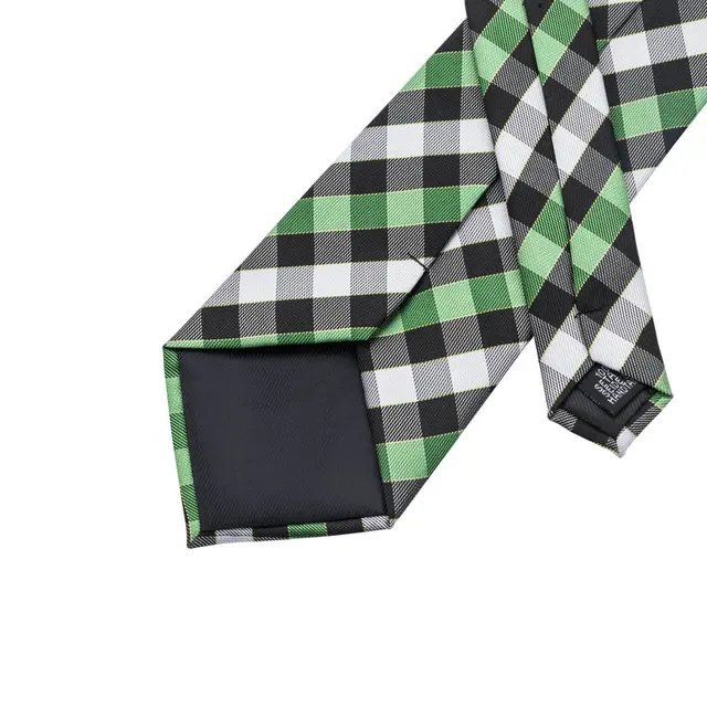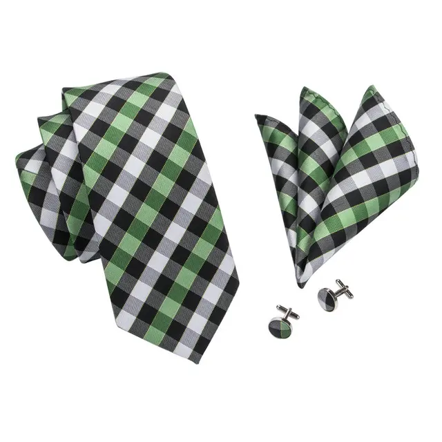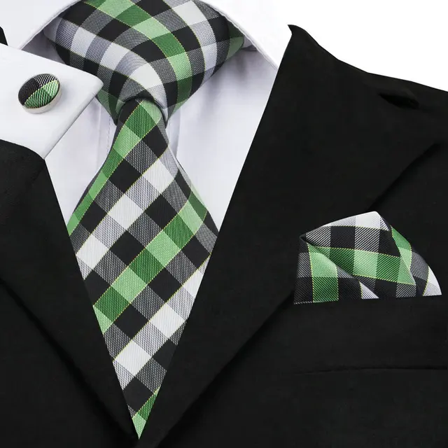| [해외]SN-942 황녹 블랙 화이트 격자 무늬 넥타이 손수건 커프스 세트 남성 100% 실크 넥타이 남성 정장 웨딩 파티 신랑 |