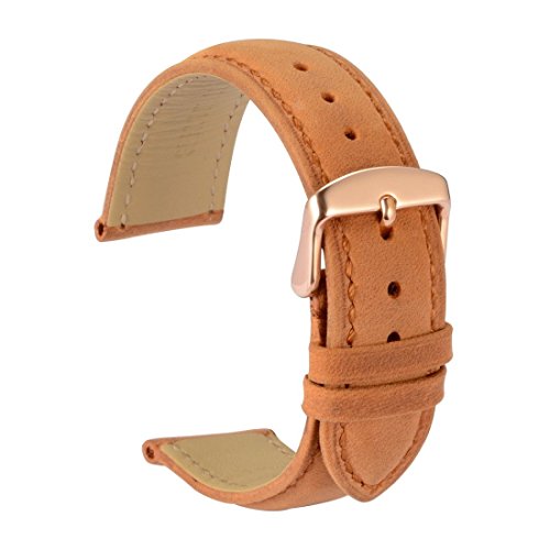 -. Title : WOCCI Watch Bands Replace Brown Vintage Leather Watch Strap with Rose Gold Metal Pins Buckle for Men Women