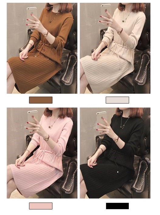 トップス部分はクルーネック、ボトム部分はリブ編みのタイトなシルエットで