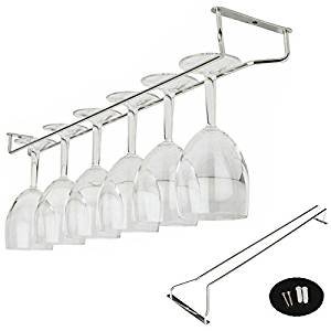Under Cabinet Wine Glass Rack, gloednApple Stainless Steel Wine Rack Glass Holder Hanging Hanger Chrome Stemware Holder for Bar Kitchen (55cm/21")