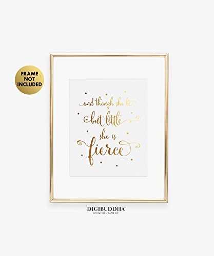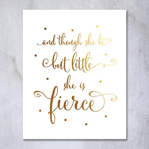 /// Though She Be But Little She Is Fierce /// Inspirational, Motivational. Our gold foil nursery art prints are the perfect gift! Beautiful gold nursery decor, kids room decor, little girl's room decor or fabulous gold bedroom decor. Contemporary gold wall art decor in shiny real foil.
