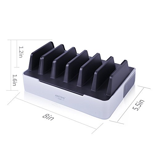 ANTPO 6-Port USB Charging Station Dock 40W Desktop Charger Fast Charging Port with Smart IC Docking Organizer for Multiple Devices iPhone iPad Samsung Galaxy LG Nexus HTC etc (Gold)